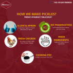 Andhra Style Chicken Pickle is a perfect dish for anyone looking for a quick and filling meal. The cuisine discovered from the womenfolk at the households of Bhimavaram, a village in Godavari District, the Spicy Chicken Achar is made with an assortment of spices and ingredients, including lemon, red chili, salt, turmeric, ginger, and garlic. Known for its light and tangy flavor, the Moksharam’s’s delicious chicken pachadi is perfect for topping on top of cooked white rice to be enjoyed with the meal.